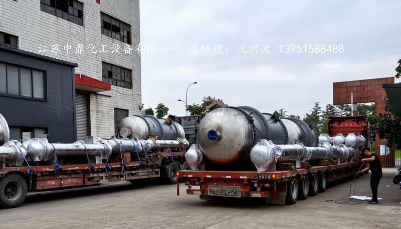 江蘇中鼎化工設備有限公司承接淮南某電子材料有限公司的55臺列管式換熱器制造過程及發貨現場。